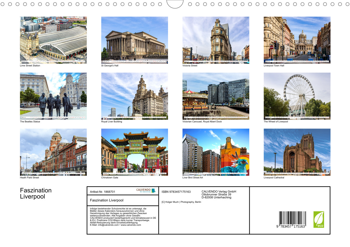 Erleben Sie Liverpool das ganze Jahr über! Dieser Kalender bringt Ihnen die schönsten Seiten dieser lebendigen Stadt direkt nach Hause. Tauchen Sie ein in die faszinierende Geschichte, die beeindruckende Architektur und die pulsierende Kultur Liverpools. Jeder Monat wird von einem atemberaubenden Foto begleitet, das ikonische Orte wie die Albert Docks, die Beatles-Statue und die majestätische Kathedrale zeigt. Ob für Sie selbst oder als perfektes Geschenk für Liverpool-Liebhaber – dieser Kalender ist ein Muss! Lassen Sie sich von Liverpools Charme verzaubern.